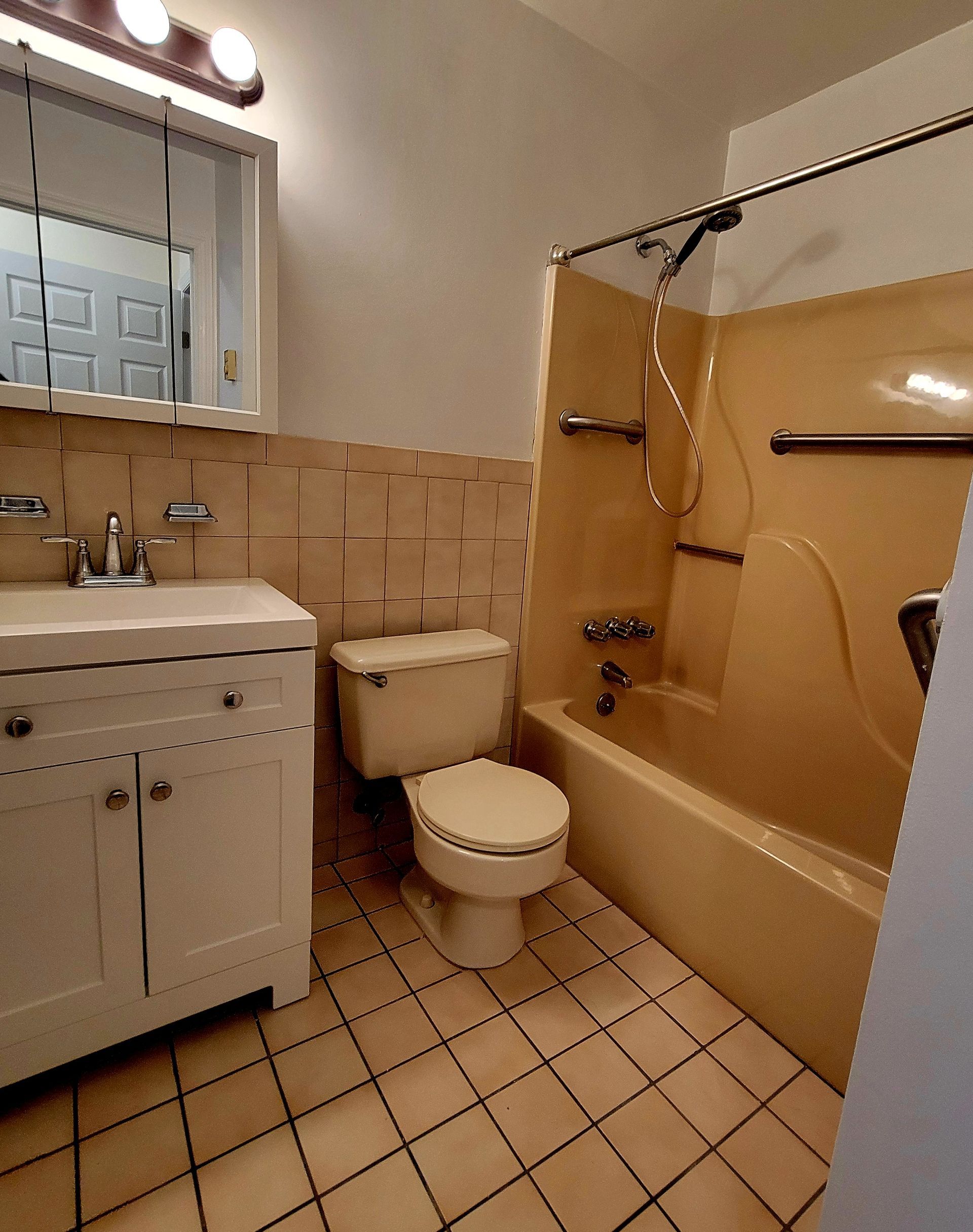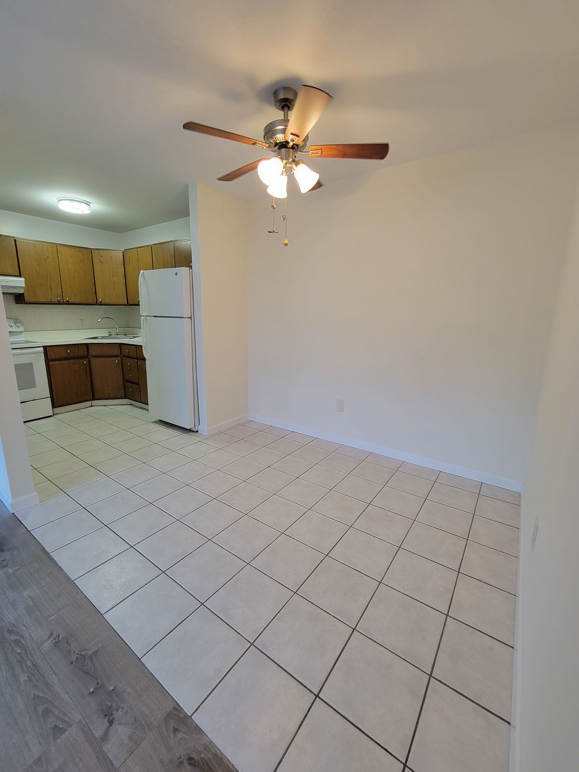 Our apartments are one bedroom, one bathroom with a separate dining area. The living space is ~600 sq. feet.